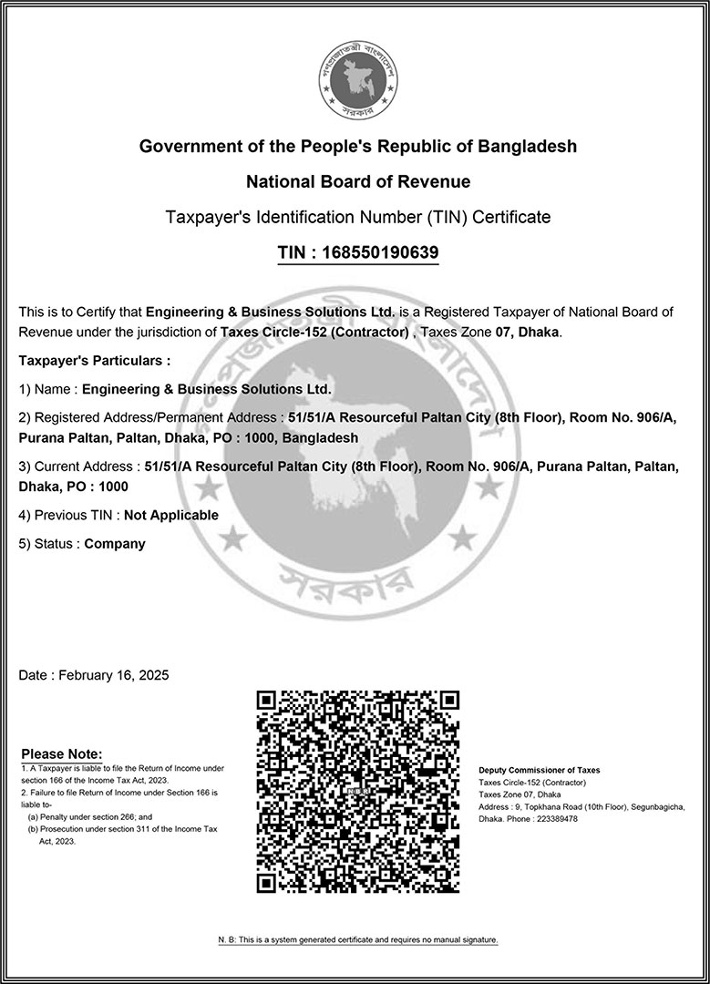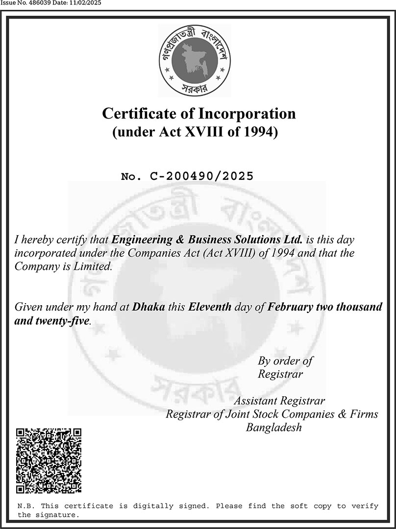 | Company Name | Engineering & Business Solutions Ltd. |
